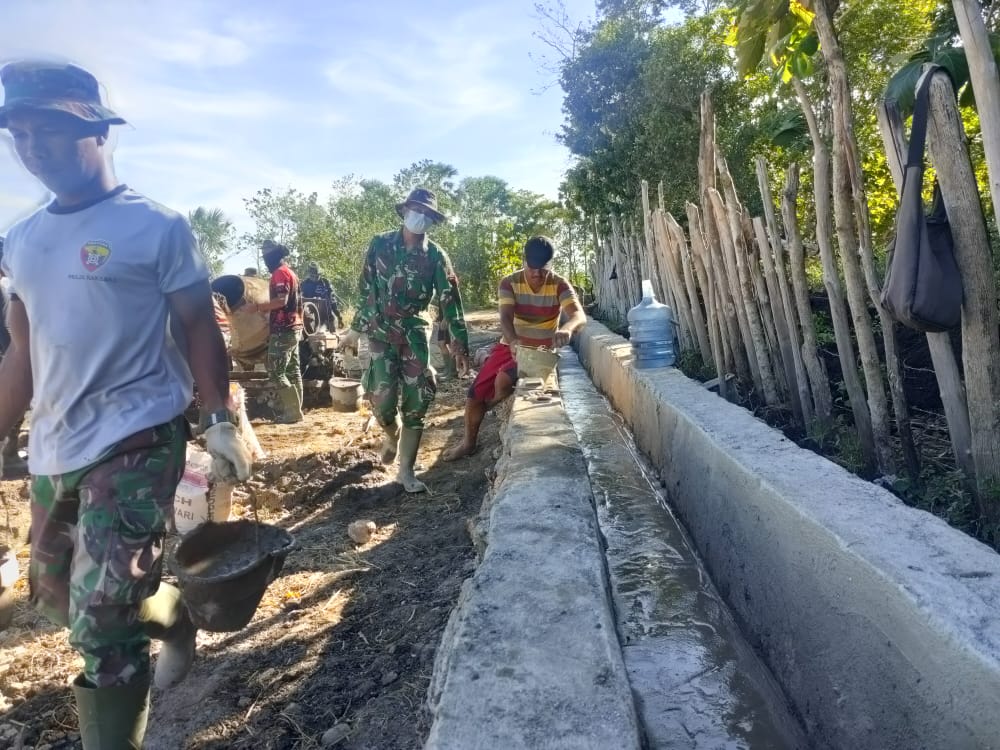 Kerja sama yang baik diwujudkan oleh Satgas TMMD ke-111 Kodim 1627/Rote Ndao. Satgas TMMD bersama masyarakat gotong royong dalam membangun Saluran Irigasi.