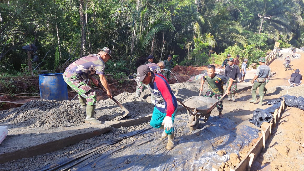 Dalam upaya meningkatkan infrastruktur di wilayah tersebut, para personel TMMD bekerja keras untuk menyelesaikan pengerjaan sasaran fisik beton tersebut. Dengan kerja sama yang solid antara TNI, Polri warga desa, dan pemerintah setempat, program TMMD ini diharapkan akan memberikan manfaat jangka panjang bagi masyarakat setempat.