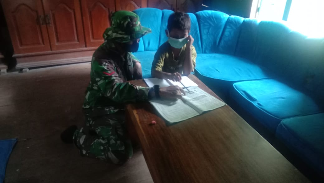 “Meskipun belajar online, anak-anak ini memerlukan pendampingan karena untuk mengoperasikan telepon selular dan juga memidahnya ke buku tulis,” Kata Kopda Puntiono, Senin(15/3/2021).