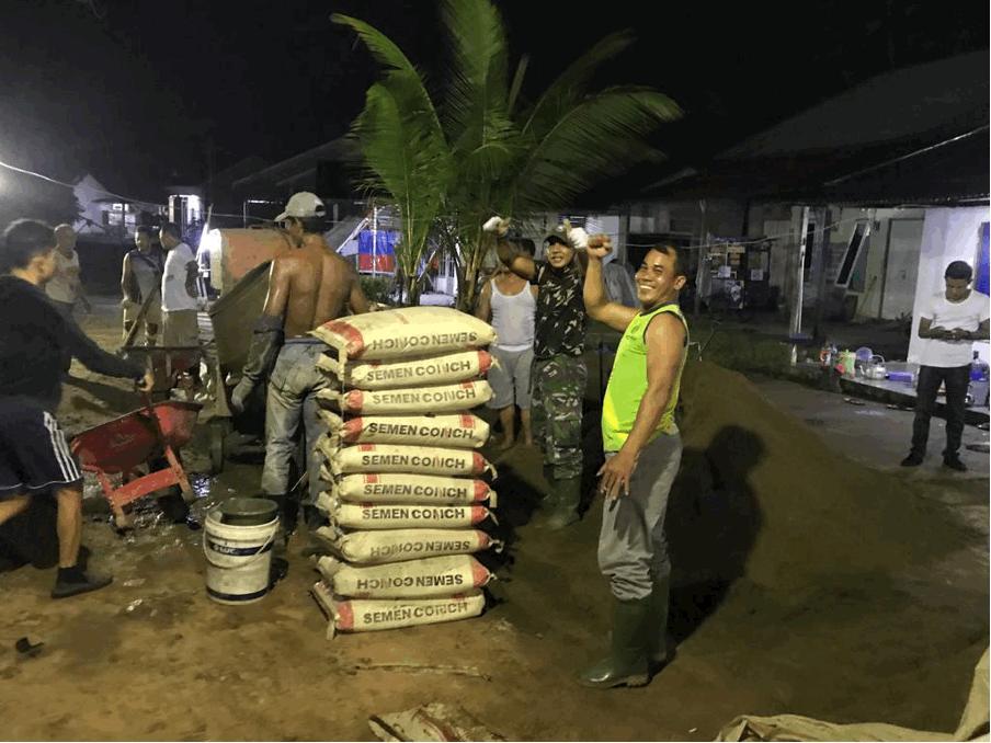 Pontianak – Telah selesai pengecoran pembangunan jalan rabat beton di Gang Pentagon, Kelurahan Tanjung Hulu, Kecamatan Pontianak Timur. Semua warga ikut turun ke jalan menyelesaikan pembangunan jalan tersebut yang hanya tinggal beberapa meter saja. Warga tampak antusias saling bahu membahu mengangkut material, mengaduk semen, hingga meratakan semen yang telah dituang ke jalan. Semua warga bersemangat karena tidak lama lagi warga sudah bisa menggunakan jalan yang dibangun bersama-sama tersebut. Minggu (06/06/2021)