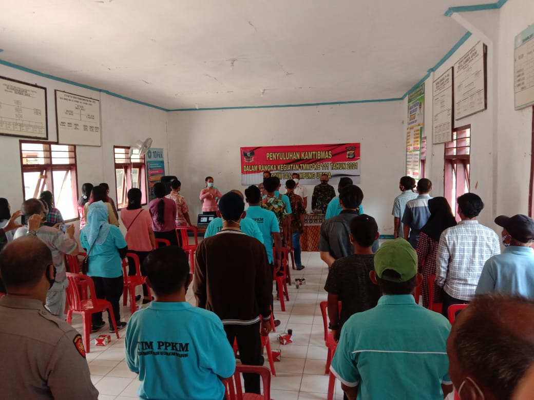 Aula Balai Desa Sumber Arum Kec. Kotabumi Kab. Lampung Utara, kegiatan Penyuluhan Kamtibmas yang dihadiri oleh Dandim 0412/LU yang diwakili oleh Danramil 412-06/Sungkai Utara, Iptu Edy Juarsyahidin Polres LU, Kades Sumber Arum Bapak Bintoro, dan Perangkat Desa serta Masyarakat (Rabu, 23/06/2021).