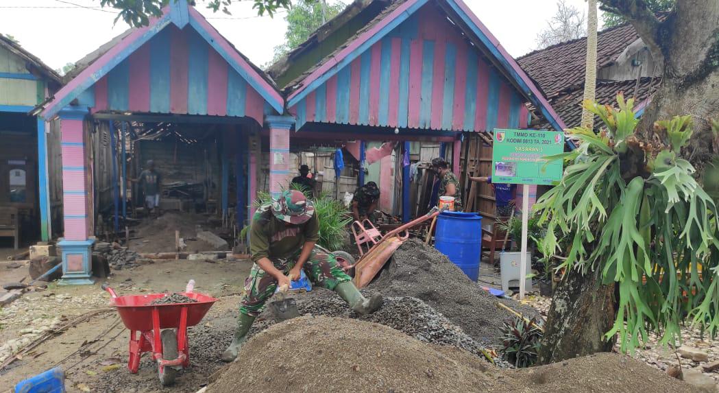 BOJONEGORO – Bersinergi membangun Negeri melalui Program TNI Manunggal Membangun Desa (TMMD) ke-110 di Bojonegoro terus berjalan dengan berbagai kegiatan pembangunan sarana prasarana fisik dan non-fisik. Seperti pemasangan dinding Rumah Tidak Layak Huni (RTLH) di Desa Ngrancang, Kecamatan Tambakrejo, Bojonegoro.