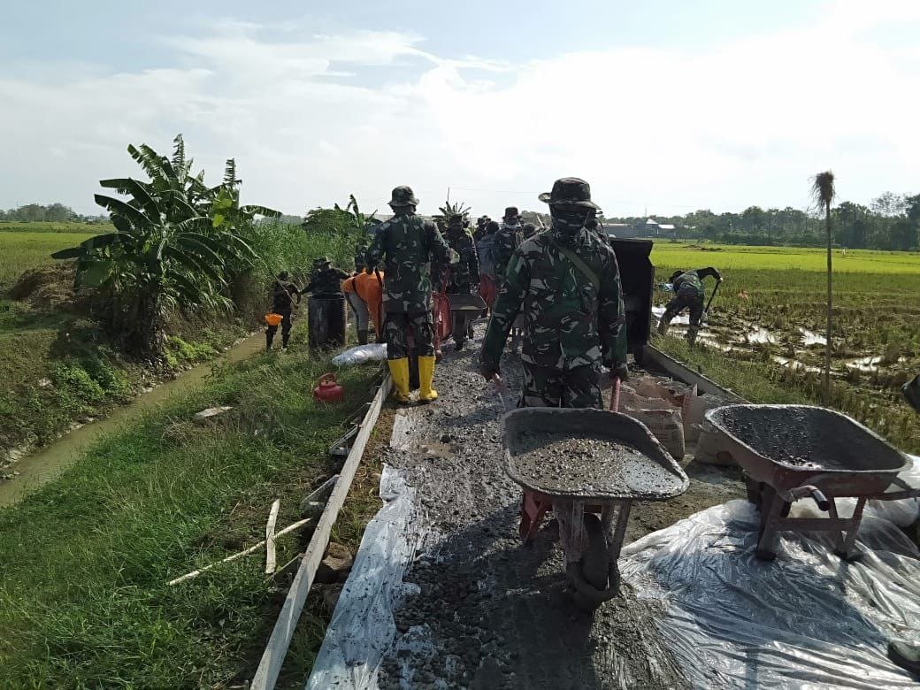 Pati – Alat angkut ini di gunakan untuk mempercepat pembangunan pengecoran jalan, pada program TMMD Reguler ke- 111 Ta. 2021, Kodim 0718/Pati, yang berada di lokasi Desa Tamansari, Kec. Jaken, Kab. Pati, Jangan disepelekan keberadan alat konvensional berupa Arco atau di sebutnya gerobak dorong.
