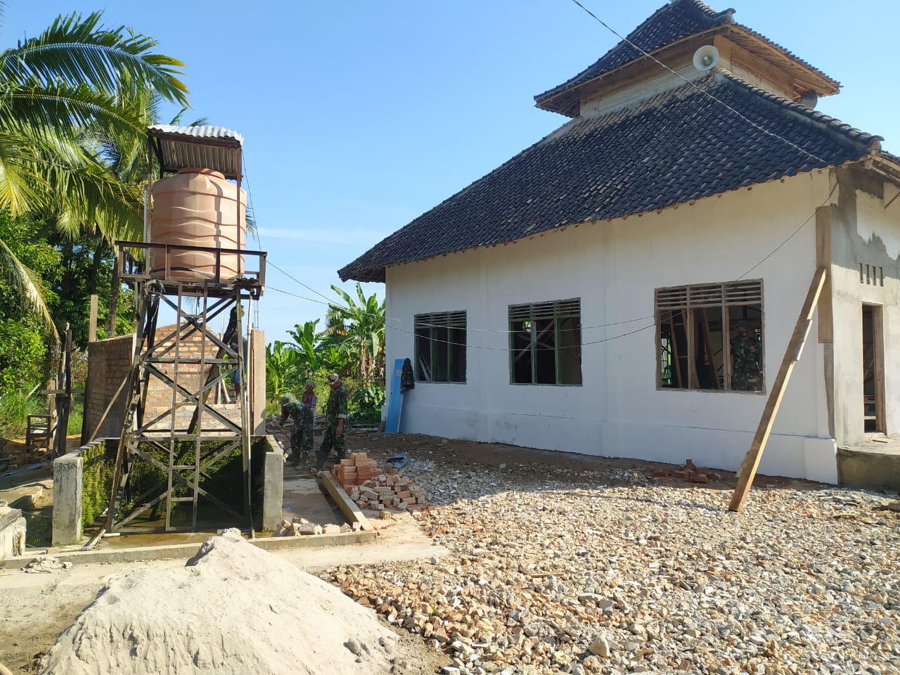 Serka Dian Risandi mengatakan dirinya bersama Prajurit TNI lainnya dan warga saat ini tengah fokus untuk pengerjaan di bagian dalam masjid. “Peran dari warga sekitar masjid ini cukup besar, setiap hari mereka secara bergantian membantu perehaban masjid dan pembangunan MCK” ungkap Serka Dian.