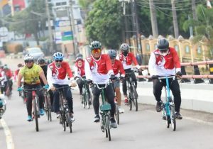Ketua DPRD Prov. Sumsel, Hj. R.A. Anita Noeringhati, S.H., M.H., melepas keberangkatan para peserta gowes yang sudah berkumpul sejak pagi pukul 06.00 WIB di lapangan Apel Makodam II/Sriwijaya Jalan Jenderal Sudirman KM 2,5 Palembang.