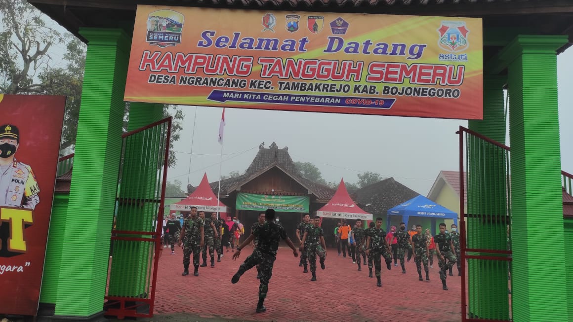 BOJONEGORO – Dalam rangka mempererat kemanunggalan TNI dengan Rakyat, Satgas TMMD 110 Kodim 0813/Bojonegoro di Desa Ngrancang Kecamatan Tambakrejo Kabupaten Bojonegoro menggelar olahraga bersama. Minggu (14/3/2021).