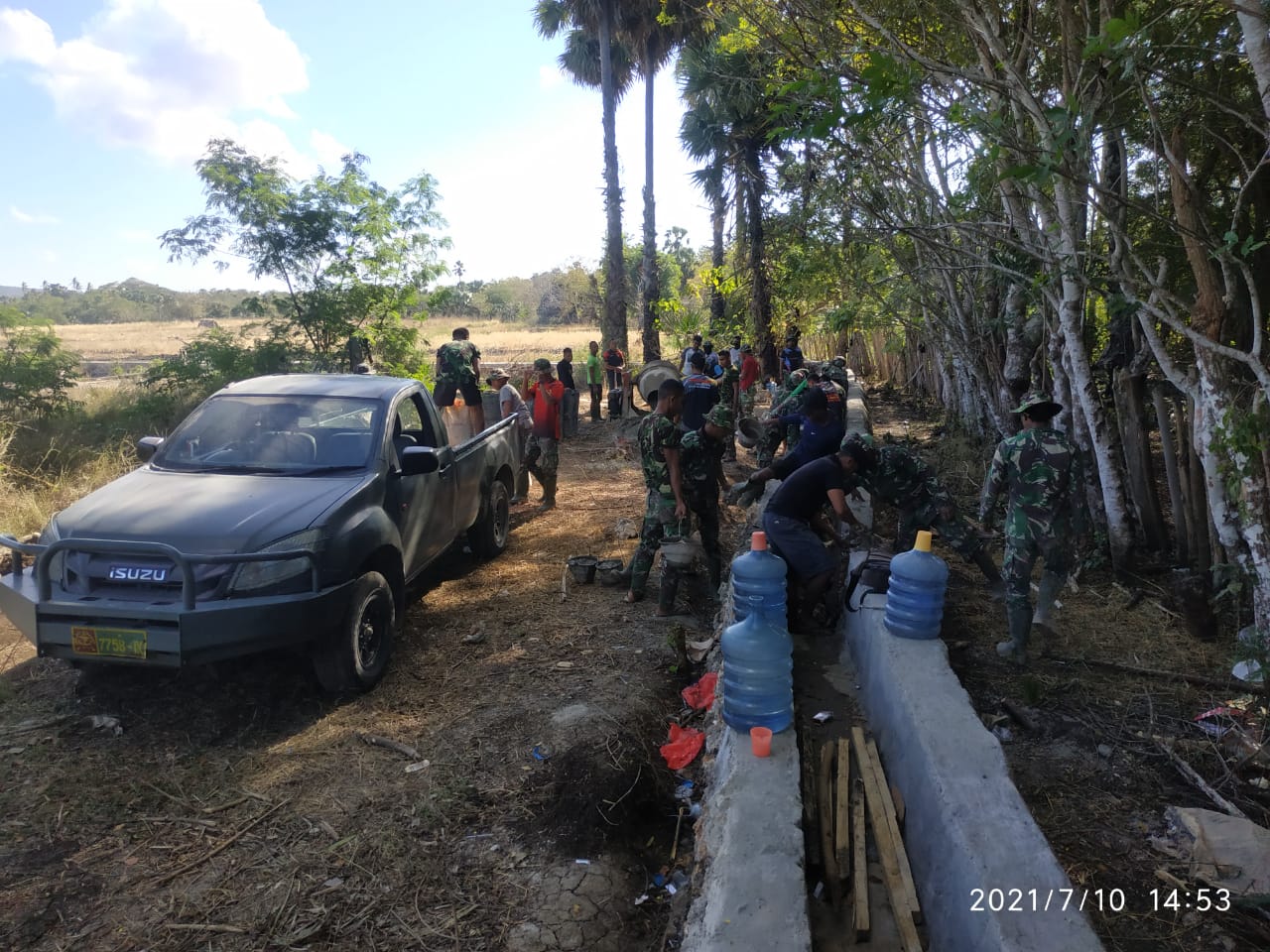 Persaudaraan dan Semangat Kerja Keras Masyarakat Desa Lekona Bersama TNI Dalam TMMD ke 111, Senin, 12 Juli 2021.