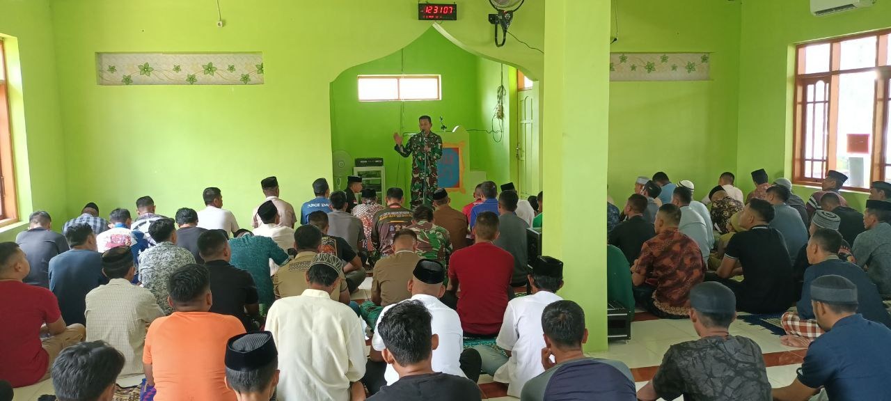 Seusai melaksanakan sholat berjamaah, Persiter Kodim 1407/Bone Kapten Inf Muh. Arsyad berikan arahan kepada personel satgas TMMD dan juaga warga setempat. Dalam arahan tersebut Pasi Ter mengatakan, dalam setiap momen keagamaan selalu dilaksanakan shalat berjamaah, bagi personel Satgas TMMD bagi yang muslim.