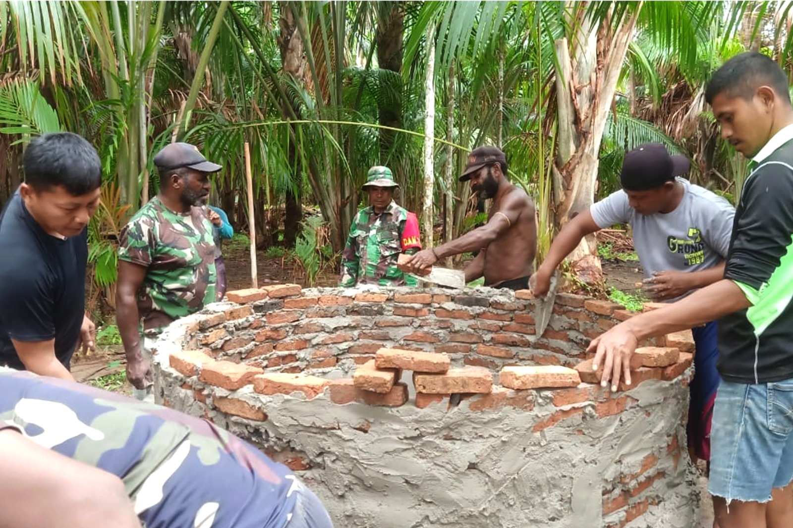 “Penggalian sumur air bersih dilakukan dengan cara manual kemudian dilakukan pemasangan batu bata dan pasir semen yang dibentuk melingkar, dan pengerjaannya dilakukan penuh dengan semangat oleh para personel Satgas TMMD yang dibantu oleh masyarakat Po Epe”. ungkap Komandan SSK Lettu Inf Abdullah Latupono.