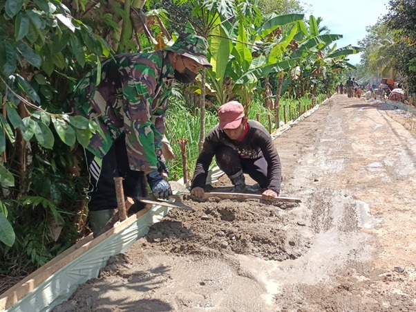 “Walaupun hari masih pagi, anggota satgas dan warga sudah nampak dengan kesibukannya masing-masing, hal tersebut terlihat dari semangat anggota satgas TMMD yang sedang melanjutkan pengerjaan rabat beton jalan. Kesibukan anggota satgas dan warga terlihat sedang menyiapkan adonan bahan pengecoran, mengangkat pasir dan pekerjaan lain yang mereka kerjakan secara gotong royong untuk mengejar target waktu yang telah direncanakan” ujar bapak Hasan selaku ketua RT003/R 003, Dusun Maju Jaya, Desa Kuala Mandor B.