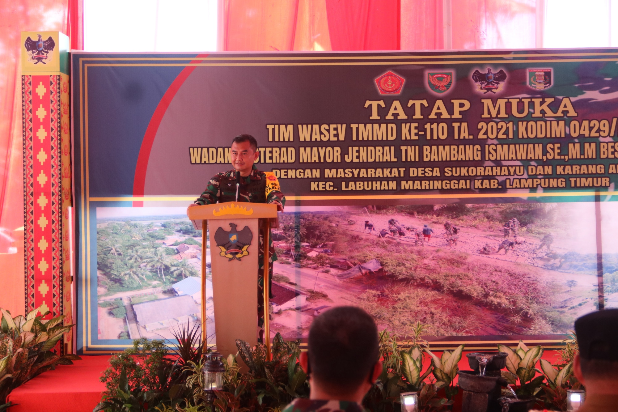 Lampung Timur, Pesan moral dari Perwira Tinggi TNI Bintang Dua untuk Bupati Lampung Timur Dawam Raharjdo. Disampaikan ketika Mayor Jendral TNI Bambang Ismawan saat berkunjung di sebuah desa terisolir di Kabupaten Lampung Timur, yakni Desa Sukorahayu, Kecamatan Labuhan Maringgai, Selasa (23/3/2021) sore.