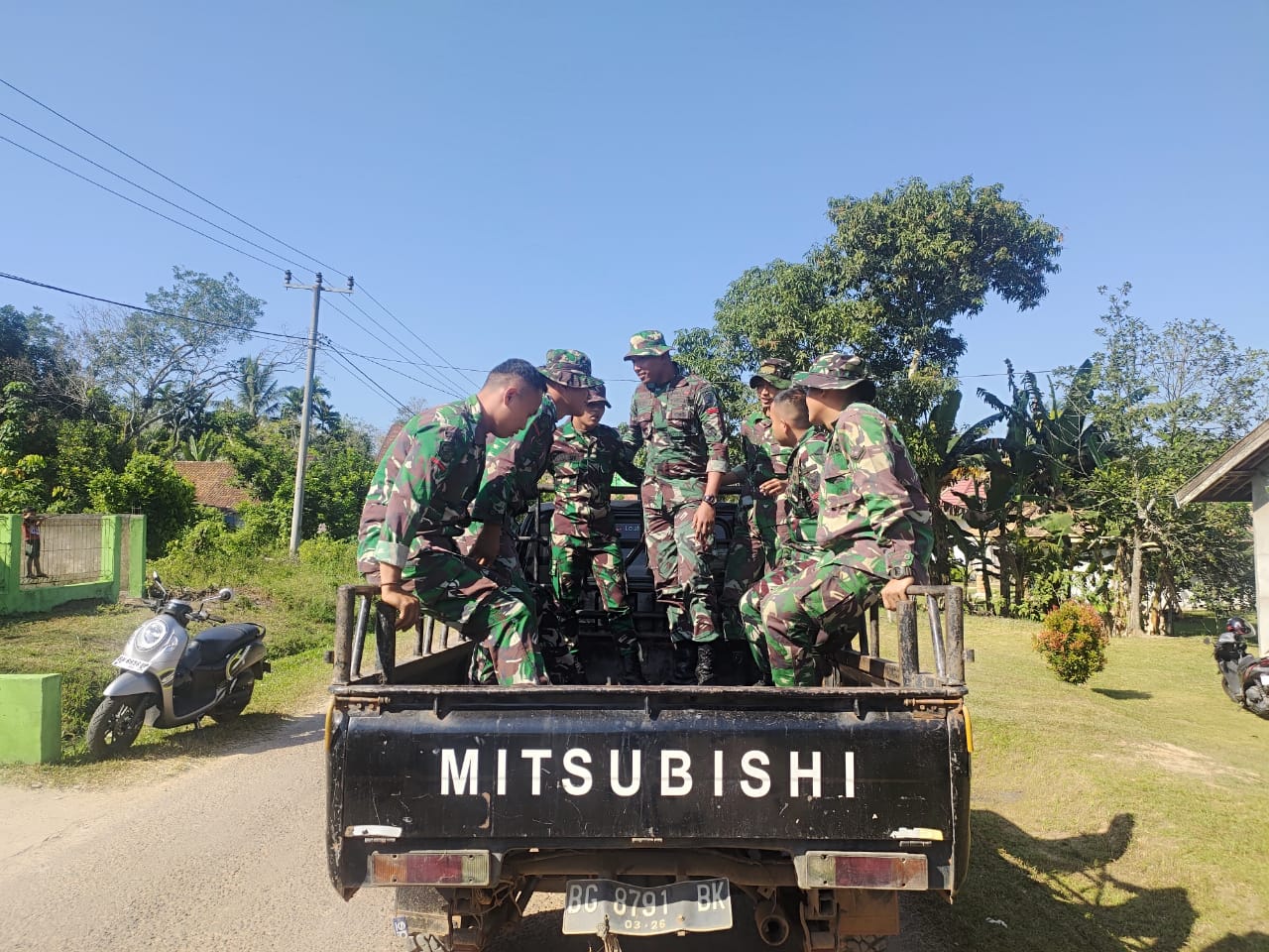 Terpantau, setiap pagi mobil pick up tersebut berada di posko TMMD di Desa Maju, Kecamatan Mestong, Kabupaten Muaro Jambi, yang mana nantinya Satgas TMMD dijemput dan diantar ke lokasi pembangunan fisik TMMD.