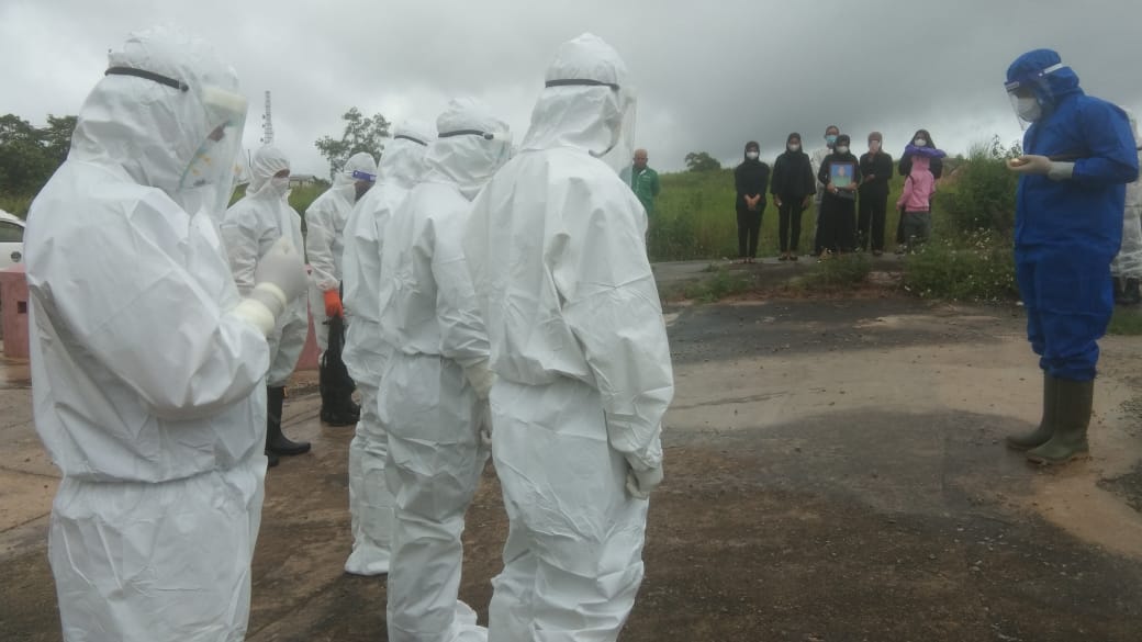 Upacara pemakaman ini digelar dalam protokol kesehatan pencegahan Covid-19 yang dihadiri Danramil Ngabang, Kapten Inf. Bambang Rusdianto serta personil Yon Armed 16/Komposit sebagai Penembak Salfo.