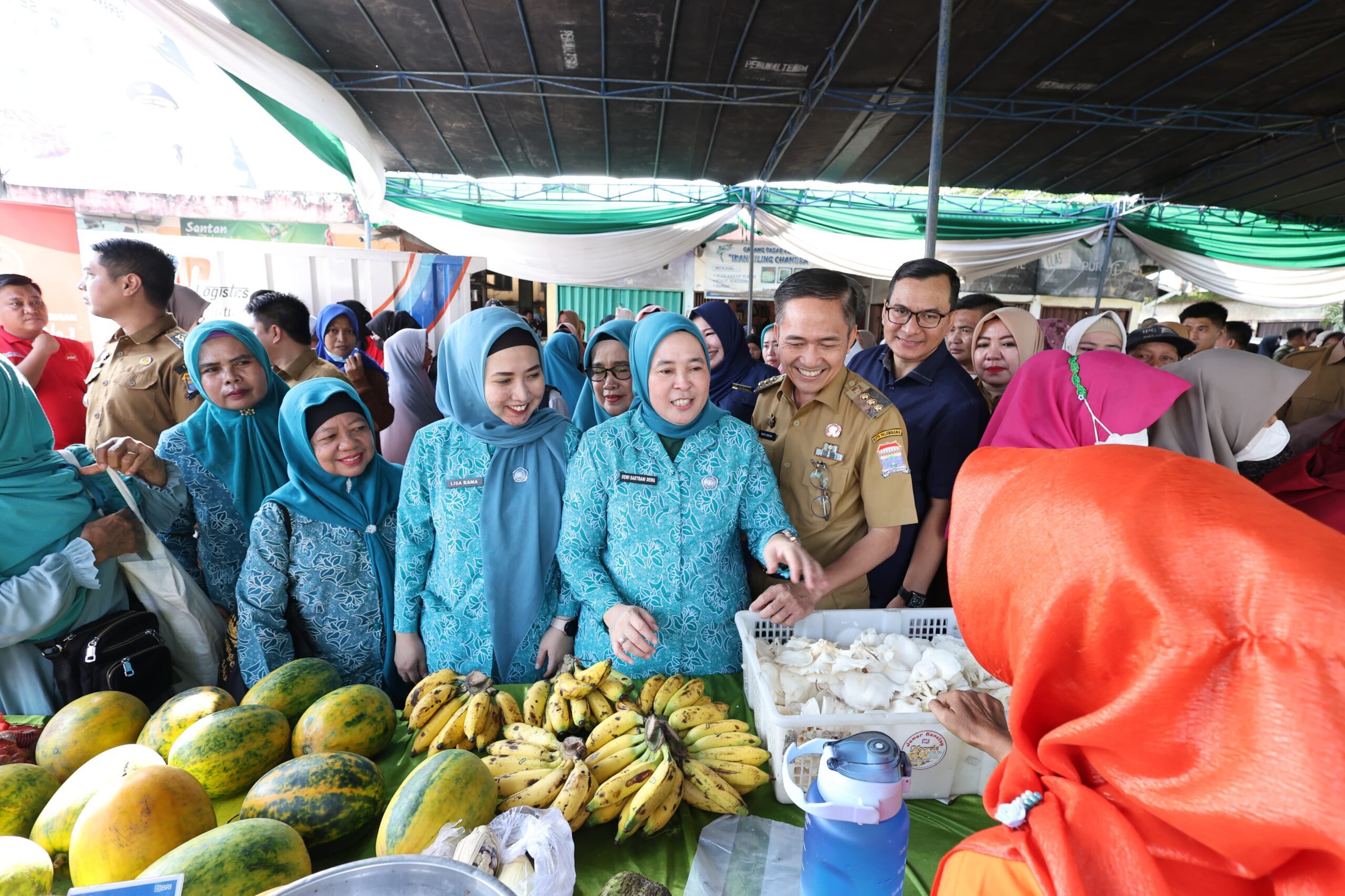 Setelah itu, Pj Walikota yang di dampingi Pj Ketua TP PKK Palembang Dewi Sastrani langsung meninjau pelaksanaan pasar murah yang terletak di Halaman Belakang Pasar Yada.