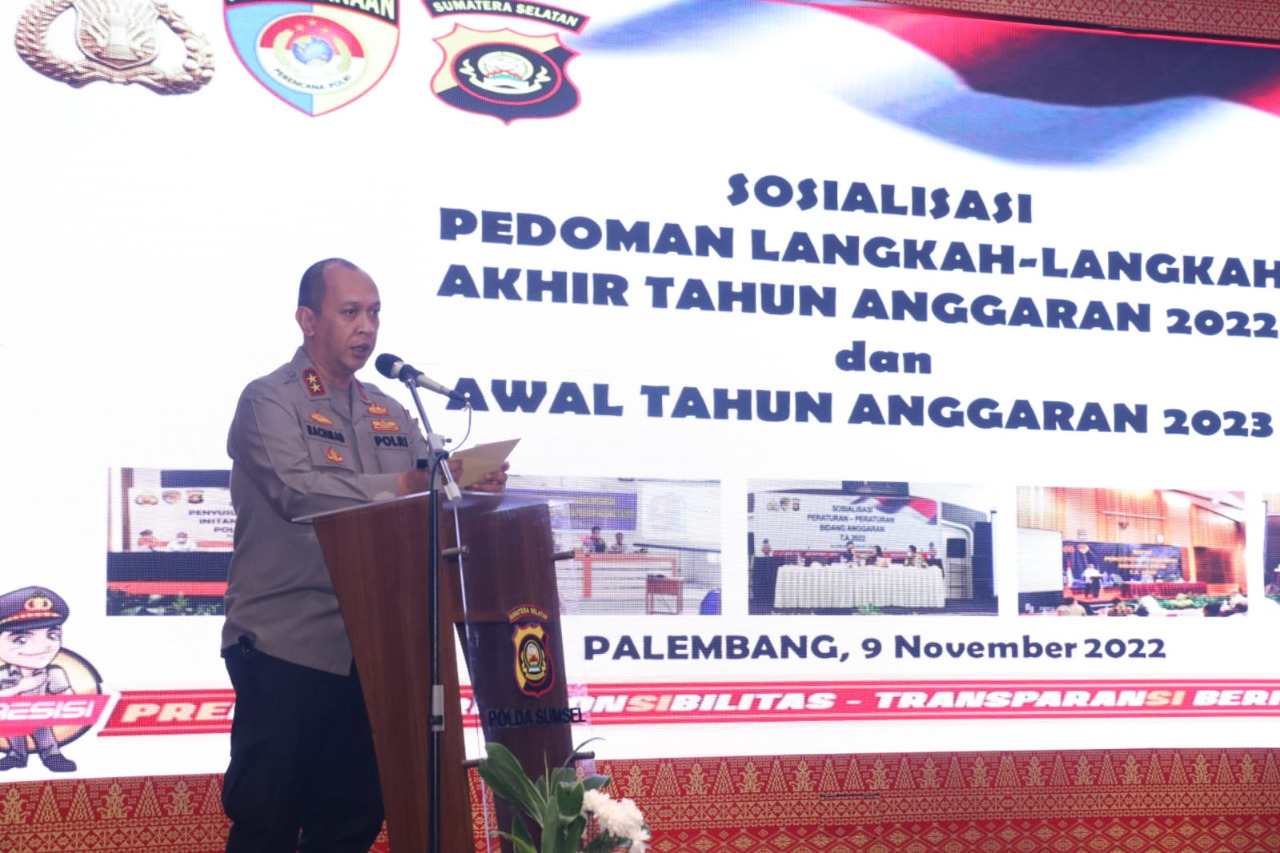 Kliksumatera.com, PALEMBANG- Kepolisian Daerah (Polda) Sumatra Selatan (Sumsel) membuka kegiatan sosialisasi langkah-langkah akhir tahun 2022 dan awal tahun 2023 serta Aplikasi Sakti Smart DJA Kemenkeu.