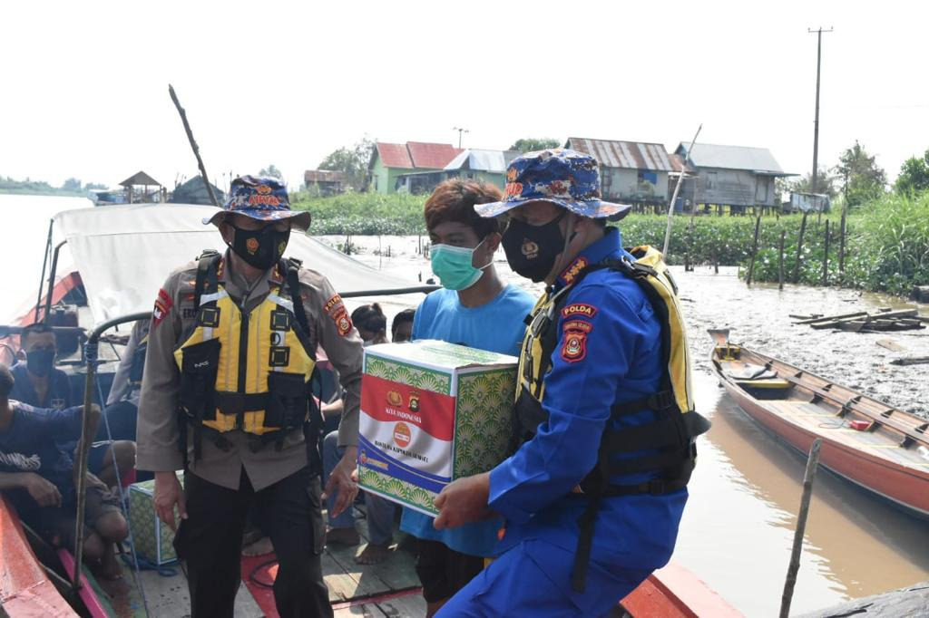 Kliksumatera.com, PALEMBANG- Kepolisian Daerah (Polda) Sumatera Selatan (Sumsel) kembali menggelar bakti sosial (baksos) dengan membagikan paket sembako kepada masyarakat pesisir perairan Sungai Musi yang terdampak Covid-19 di perairan Borang, Kabupaten Banyuasin, Jumat (23/7).