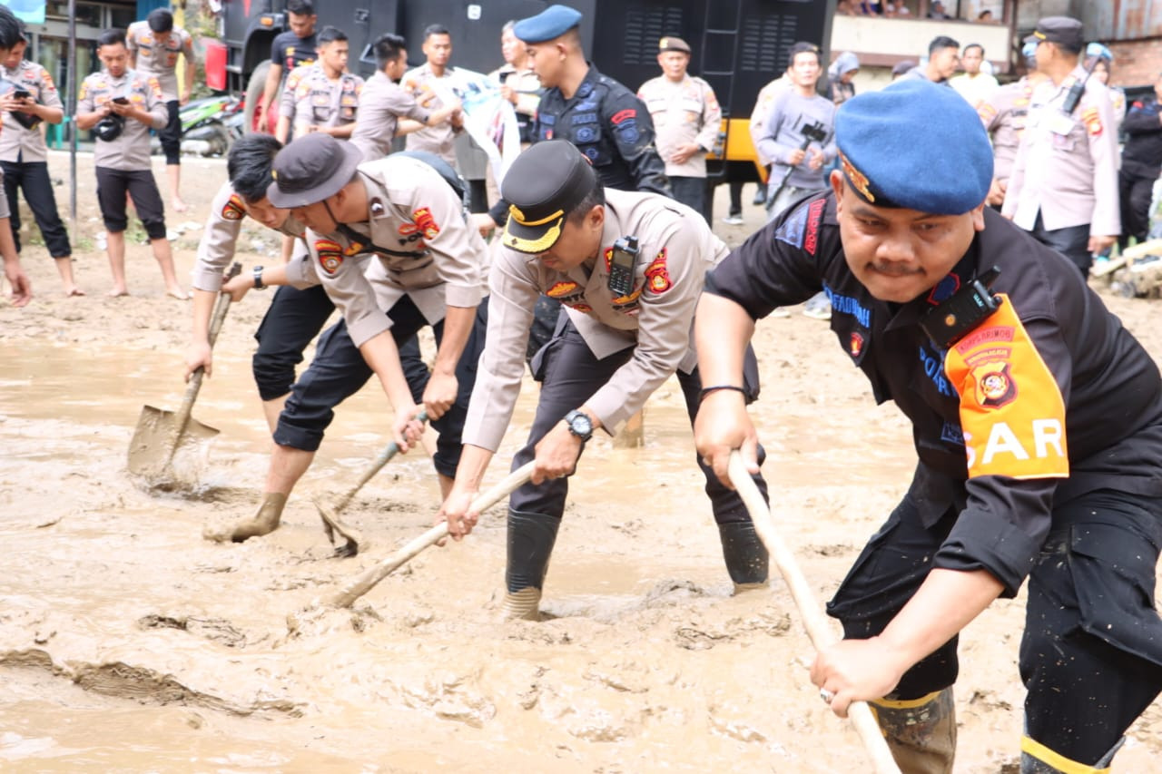 Polda Sumsel memberikan bantuan dengan mengirimkan personilnya untuk membantu evakuasi korban bencana alam di wilayah hukum Polres Lahat, Kamis 9 Maret 2023.