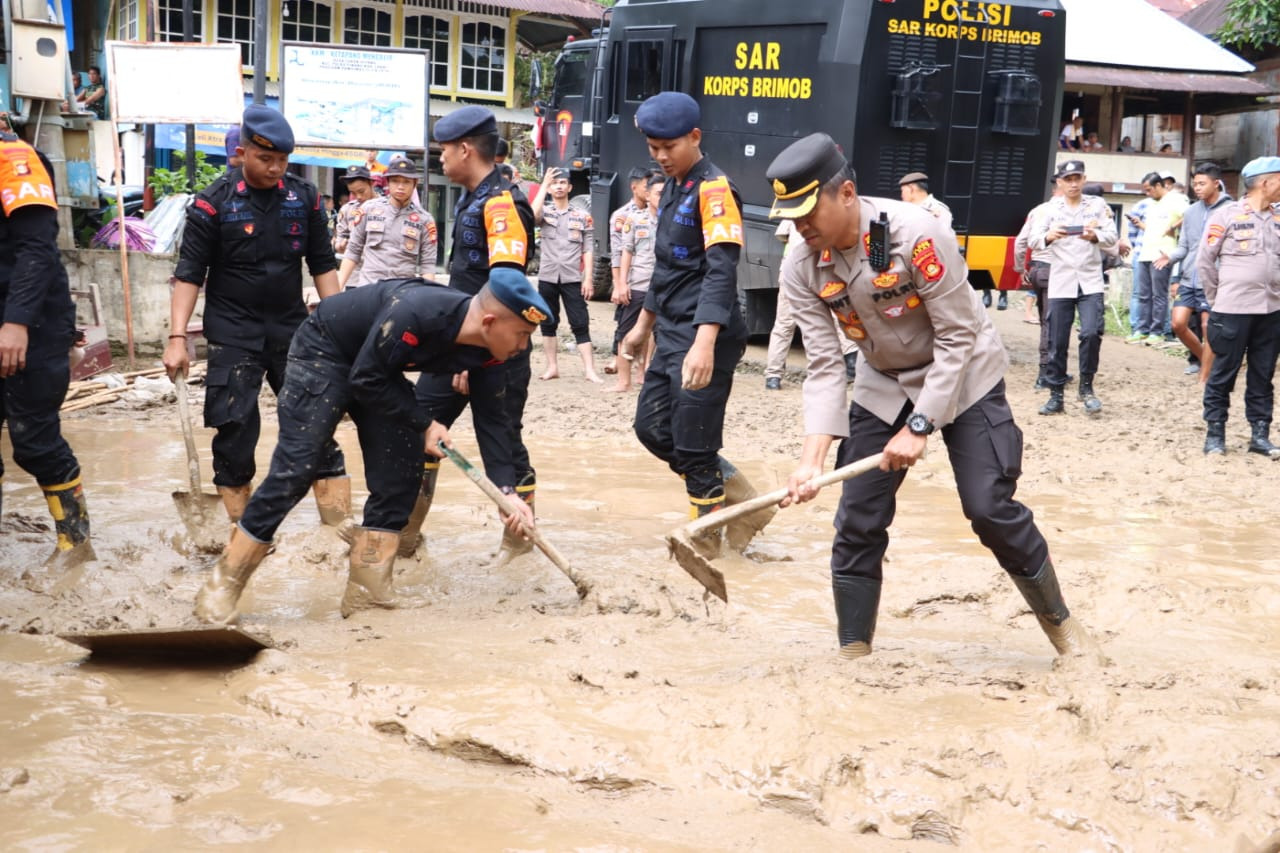 Dari kejadian tersebut, dengan sigap jajaran Polda Sumsel dari Polres hingga jajaran Polsek Lahat langsung dikerahkan untuk turun tangan membantu korban longsor dan banjir bandang yang terjadi di sejumlah Kecamatan Kabupaten Lahat.