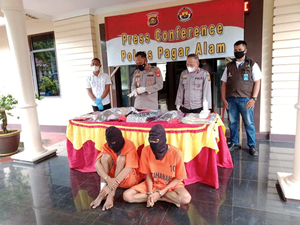 Kapolres Pagaralam AKBP Arif Harsono SIk MH didampingi Kasat Narkoba Iptu Faizal Kamil diperkuat Tim KBO Ipda Yoga Suganda saat press rilis Selasa (07/09) mengatakan, pengungkapan ganja asal Empat Lawang ini berdasarkan pengembangan kasus sebelumnya. “Setelah melakukan pengintaian Satnarkoba berhasil mengamankan tersangka. Dua tersangka masing-masing Yoga dan Feris (diberi tindakan tegas dan terukur) kita amankan berikut sejumlah barang bukti. Melihat modus yang digunakan tersangka diduga memang sudah pemain lama,” pungkasnya.