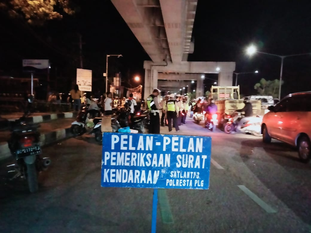 Kliksumatera.com, PALEMBANG- Kasatlantas Polrestabes Palembang beserta jajaran dan satpol PP melaksanakan razia bagi pengendara yang melakukan pelanggaran, baik itu kendaraan roda dua maupun roda empat. Hal itu dilakukan guna menertibkan kendaraan yang ada di Kota Palembang dan membantu pemerintah Kota Palembang mempercepat program vaksinasi Covid-19. Razia tersebut dilaksanakan depan Kantor DPRD Kota Palembang, pada malam hari Jumat (29/10/2021) pukul 21.00 Wib.
