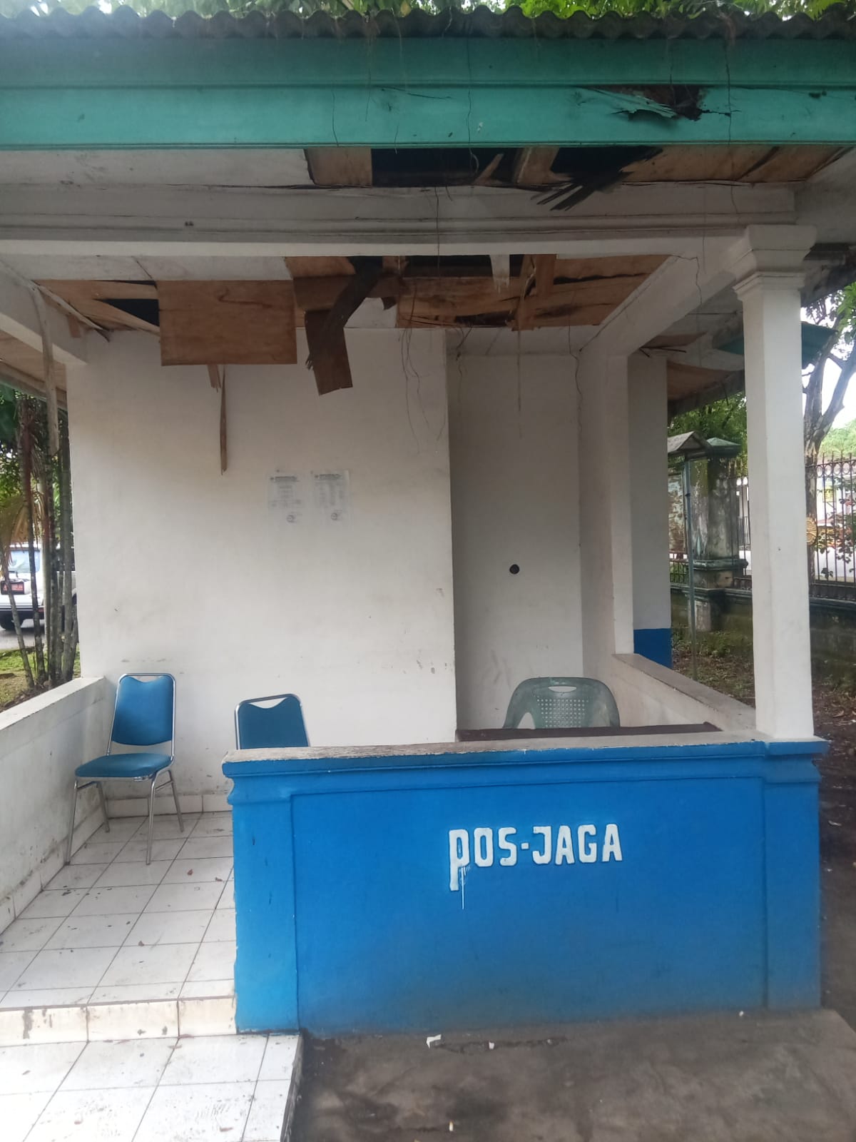 Diketahui dari salah seorang penjaga yang tidak mau disebut namanya Jumat (13/1) mengatakan, pos jaga ini dibangun sejak zaman kepemimpinan akhir H. Harunata. Hingga sekarang pos jaga ini tidak terawat hingga berakibat kondisi bangunan pos jaga banyak yang hancur baik itu atapnya, plafonnya juga kamar dan wcnya sudah tidak layak lagi.