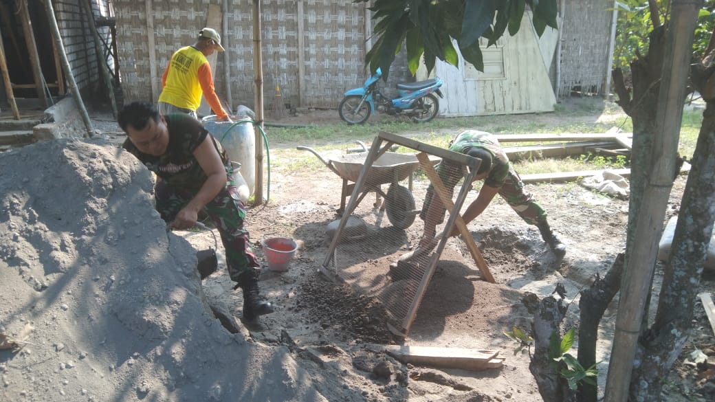 Pati – Kegiatan Pra Tentara Manunggal Membangun Desa (TMMD) Reguler Ke – 111 Kodim 0718/Pati rehab Rumah Tidak Layak Huni (RTLH), di Desa Tamansari, Kecamatan Jaken, Kabupaten Pati,di rumah Sutiah (57) koral dan pasir masih menghiasi disasaran RTLH, dalam pengerjaan RTLH di Desa Tamansari Angota Satgas Pra TMMD dengan penuh semangat gotong royong dengan warga agar sasaran bisa selesai tepat waktu.