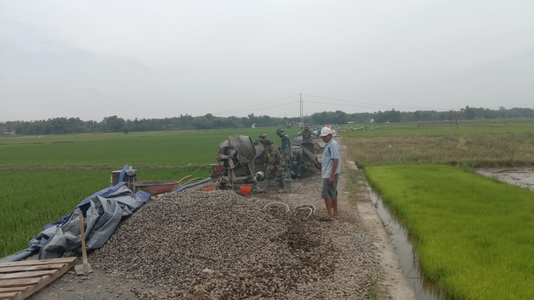 Pati – Danramil 16/Jaken Kapten Kav Budi Karyadi, SE memimpin kegiatan pengerjaan pengecoran jalan sepanjang kurang lebih 1450 meter bersama anggota Satgas TMMD Kodim 0718/Pati dalam rangka Pra TMMD Reguler Ke-111, Jumat (4/6/21) di Desa Tamansari, Kecamatan Jaken, Kabupaten Pati.