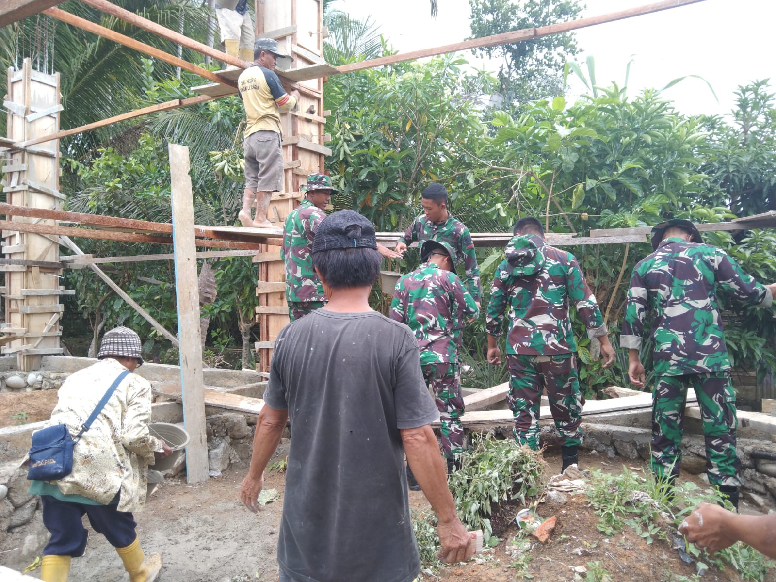 Kliksumatera.com, PALEMBANG- Para Prajurit Batalyon Infanteri 144/Jaya Yudha membantu warga dalam pengecoran tiang Masjid At Tohit, yang berlokasi di Desa Padang Jawi Kecamatan Bunga Mas Kabupaten Bengkulu Selatan, Selasa (31/01/2023).