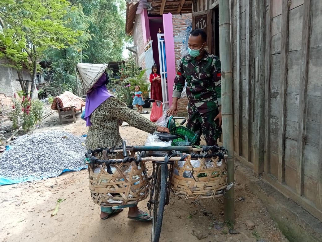 Salah satunya adalah Praka Fajar Riyanto yang tampak akrab dengan Siti sundari salah satu penjual sayur dan jajan keliling langganannya.