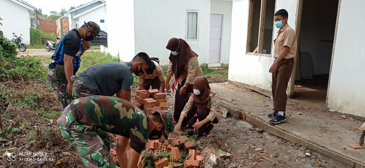 PALEMBANG,Kodim0418 – Setiap hari minggu Anggota Pramuka Saka Wira Kartika Kodim 0418 melaksanakan latihan Baris – Berbaris. Namun, Minggu (14/3/2021) selain melaksanakan kegiatan baris berbaris para anggota juga bergotong royong membantu Satgas TMMD Kodim 0418 Palembang dalam membangun infrastruktur di Lorong Jawi.