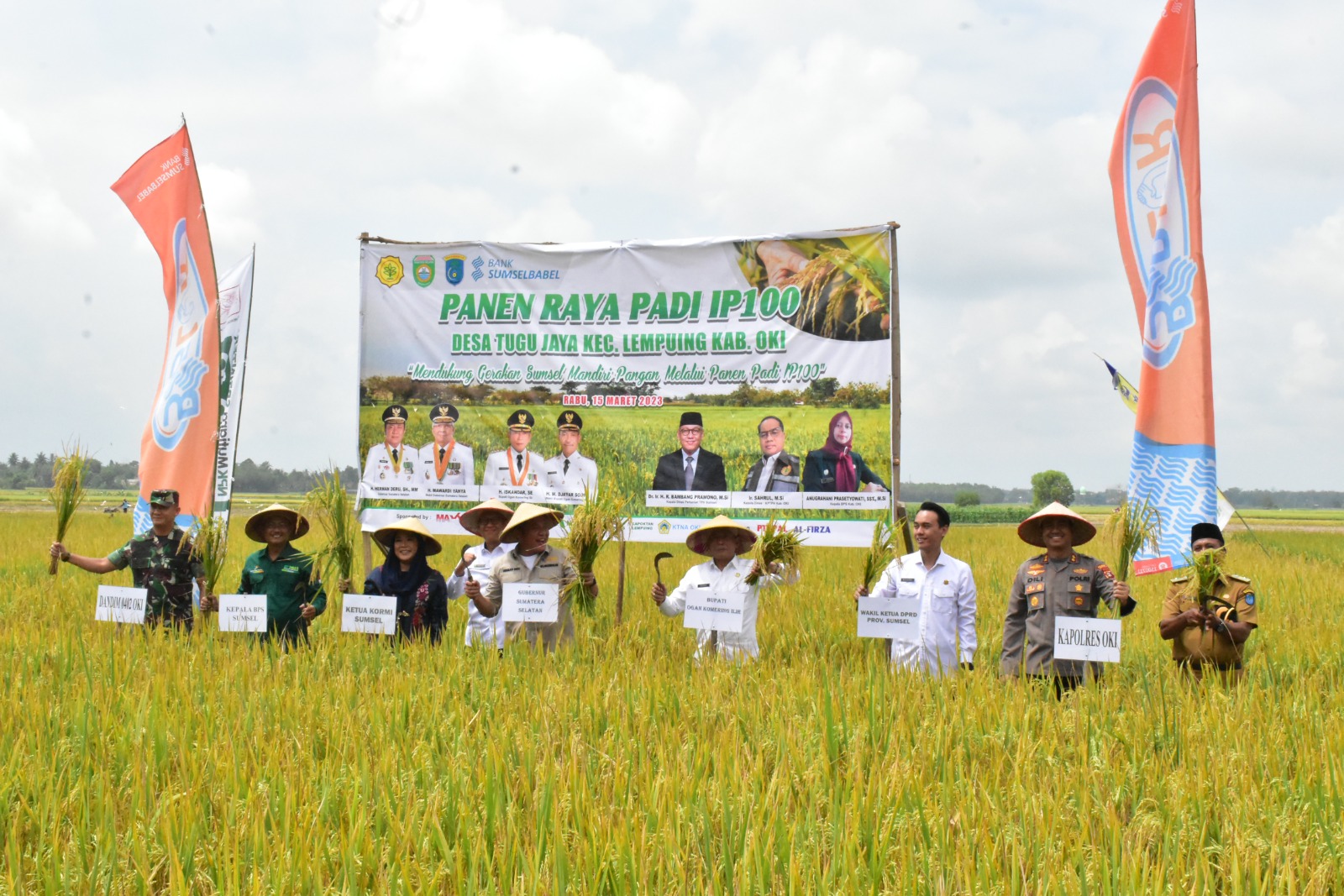 Sementara Gubernur Sumsel, H. Herman Deru mengapreasi peningkatan produksi padi di Kabupaten OKI. Menurut Gubernur Deru hasil ini sudah setara dengan daerah lumbung beras nasional. “Bisa produksi 6-7 ton per hektare artinya produksi kabupaten OKI sudah setara dengan daerah lumbung pangan nasional. Untuk meningkatkannya perlu ke disiplinan petani,” ujar Deru.