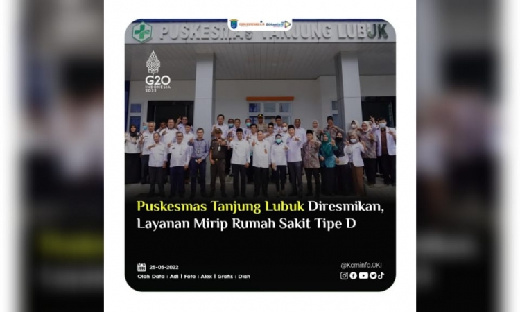 Kliksumatera.com, KAYUAGUNG- Wakil Bupati OKI, H. M. Dja’far Shodiq meresmikan pusat layanan kesehatan masyarakat (Puskesmas) Tanjung Lubuk Kabupaten OKI pada Rabu, (25/5). Puskesmas yang berdiri megah di pusat ibu kota kecamatan ini memiliki fasilitas lengkap setara Rumah Sakit (RS) tipe D.