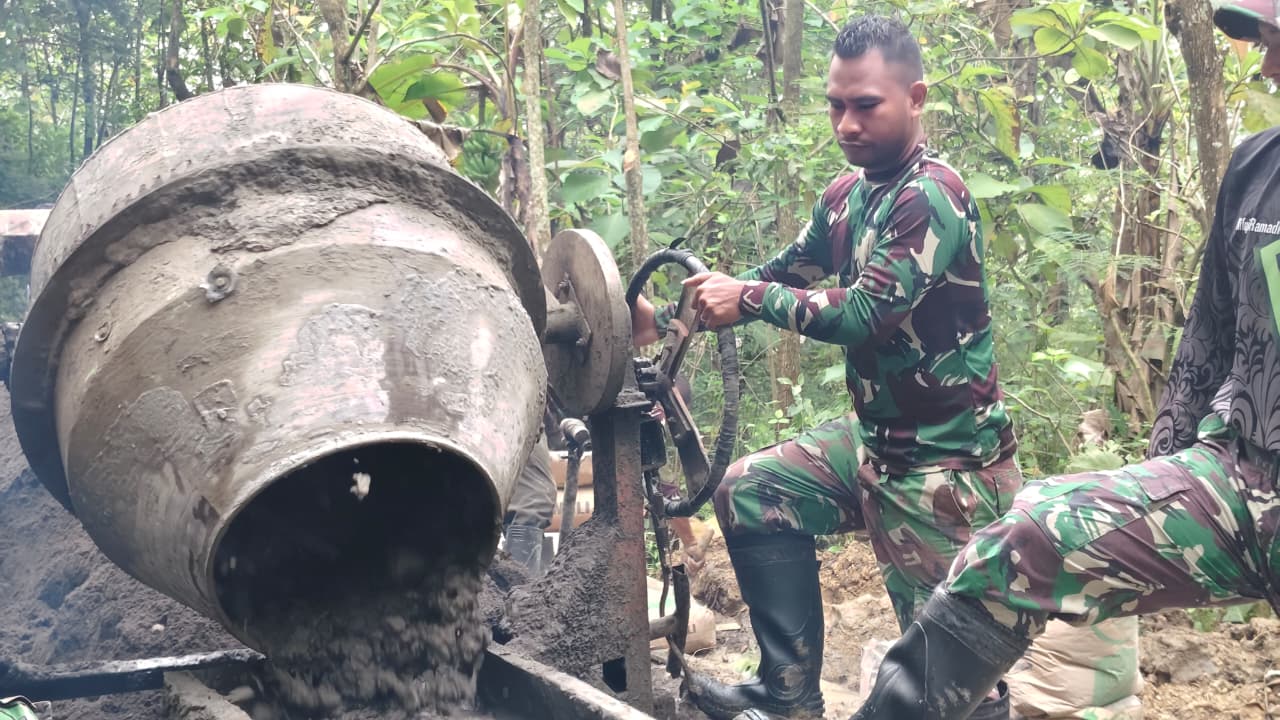 Pada Senin (02/03/2026), di tengah teriknya matahari menyengat lokasi pembangunan infrastruktur, Praka Hendrik tampak tak kenal lelah bekerja bersama warga Desa Cikuya. Bukan hanya tenaganya yang diandalkan, namun karakter khasnya yang ceria dan penuh energi menjadi “booster” tersendiri bagi rekan-rekan sejawatnya.