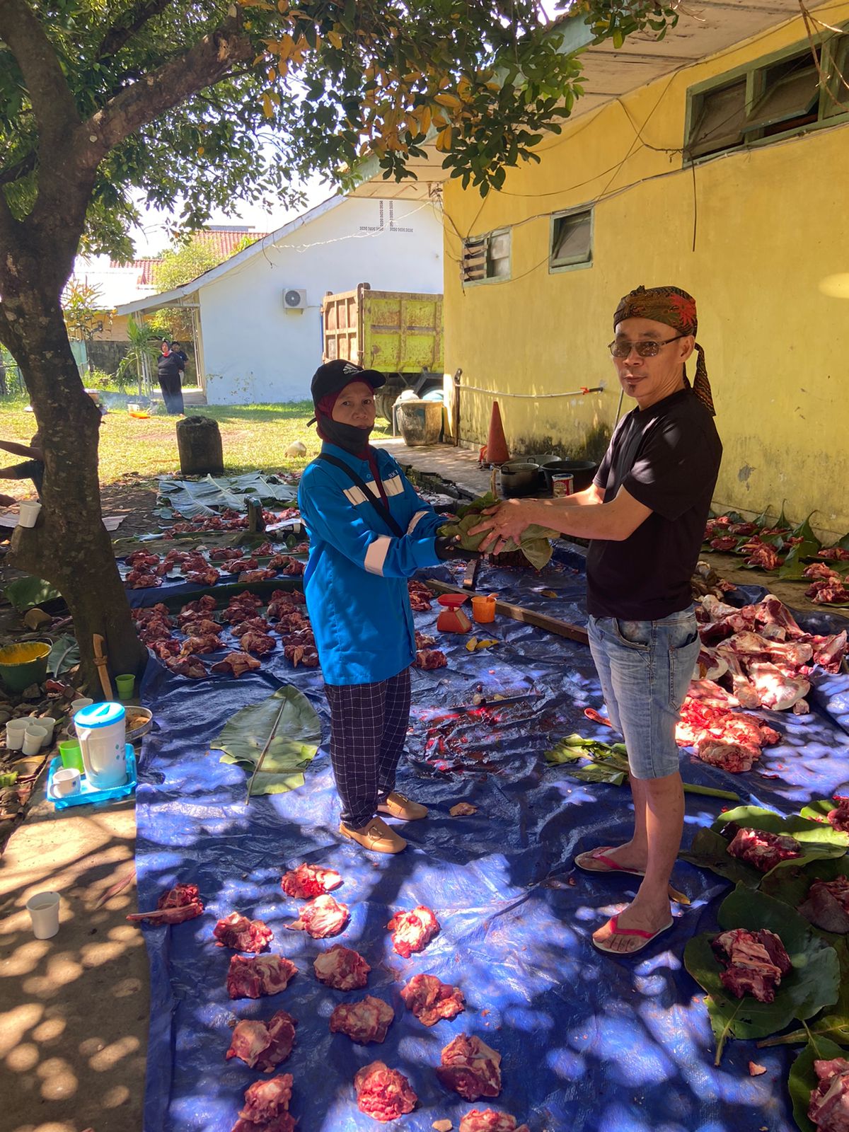 Secara simbolis, daging kurban diserahkan Kadis DLH Agus Salman diwakili Kabid 1 Edi Soroso Kabid Wasdal kepada Soleh ST Kepala UPTD Laboratorium DLH Lahat, kemudian daging kurban tersebut dibagikan kepada 49 ASN dan 268 non-ASN.