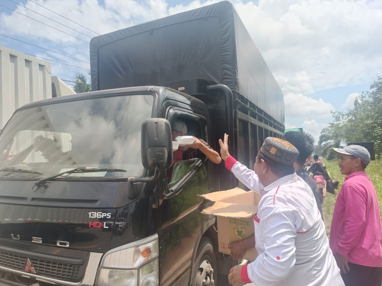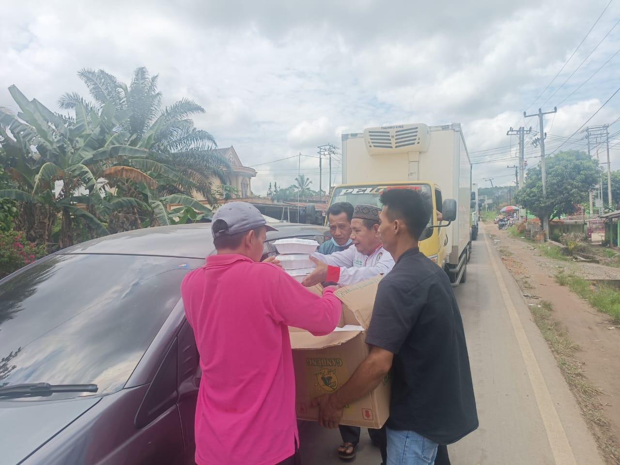 Kliksumatera.com, SEKAYU- Ranting NU bersama warga Desa Bukit Jaya C3 Kecamatan Sungai Lilin Kabupaten Musi Banyuasin (Muba) Provinsi Sumatra Selatan menggelar aksi bakti sosial dengan membagikan 170 nasi kotak dan 15 dus air mineral kepada pengguna jalan yang terdampak kemacatan di Jalintim Palembang – Jambi di ruas Jalan di Desa Peninggalan Kamis (10/4/25).