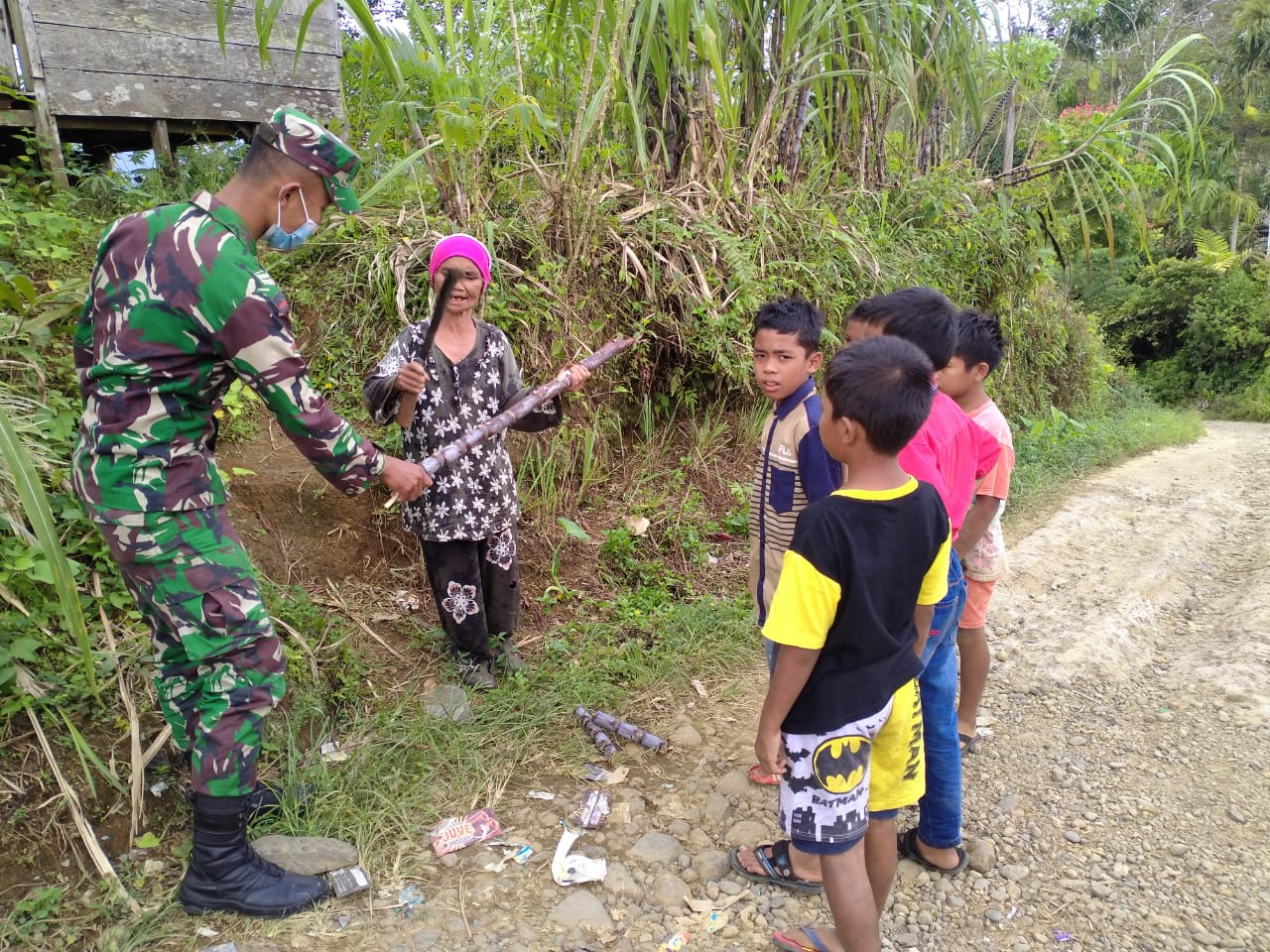 Tak terkecuali anak-anak juga terimbas dengan adanya TMMD ke 111 di desanya yang akan membuat jalan baru sepanjang 6,4 km. Anak-anak menyambutnya dengan gembira. Hal ini tercermin dari raut wajah riang gembira setelah diajak bermain oleh Babinsa Serka Ali Rahman, Jum’at (11/6/2021).