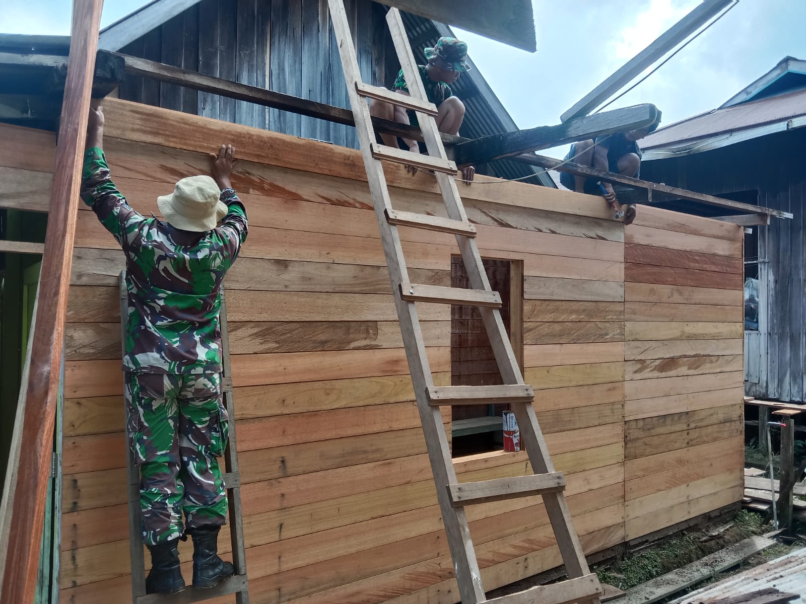 Rehabilitasi pembangunan gereja GPDI di Desa Sebidai tak luput dalam pengerjaan sasaran Fisik TMMD 122 Kodim Tana Tidung.