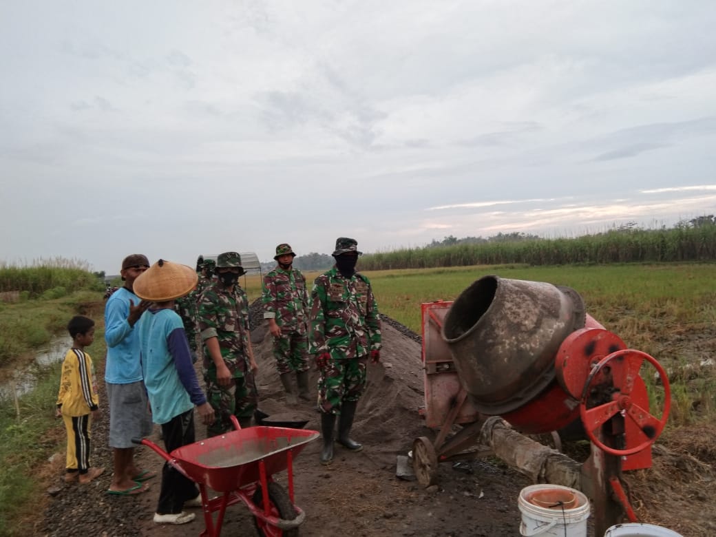 Pati- Betonisasi jalan penghubung antar desa yang berlangsung dalam program TMMD regular 111 Kodim Pati terus dikebut untuk mengejar target yang ditentukan oleh Dansatgas TMMD.Kamis,(17/06/2021).
