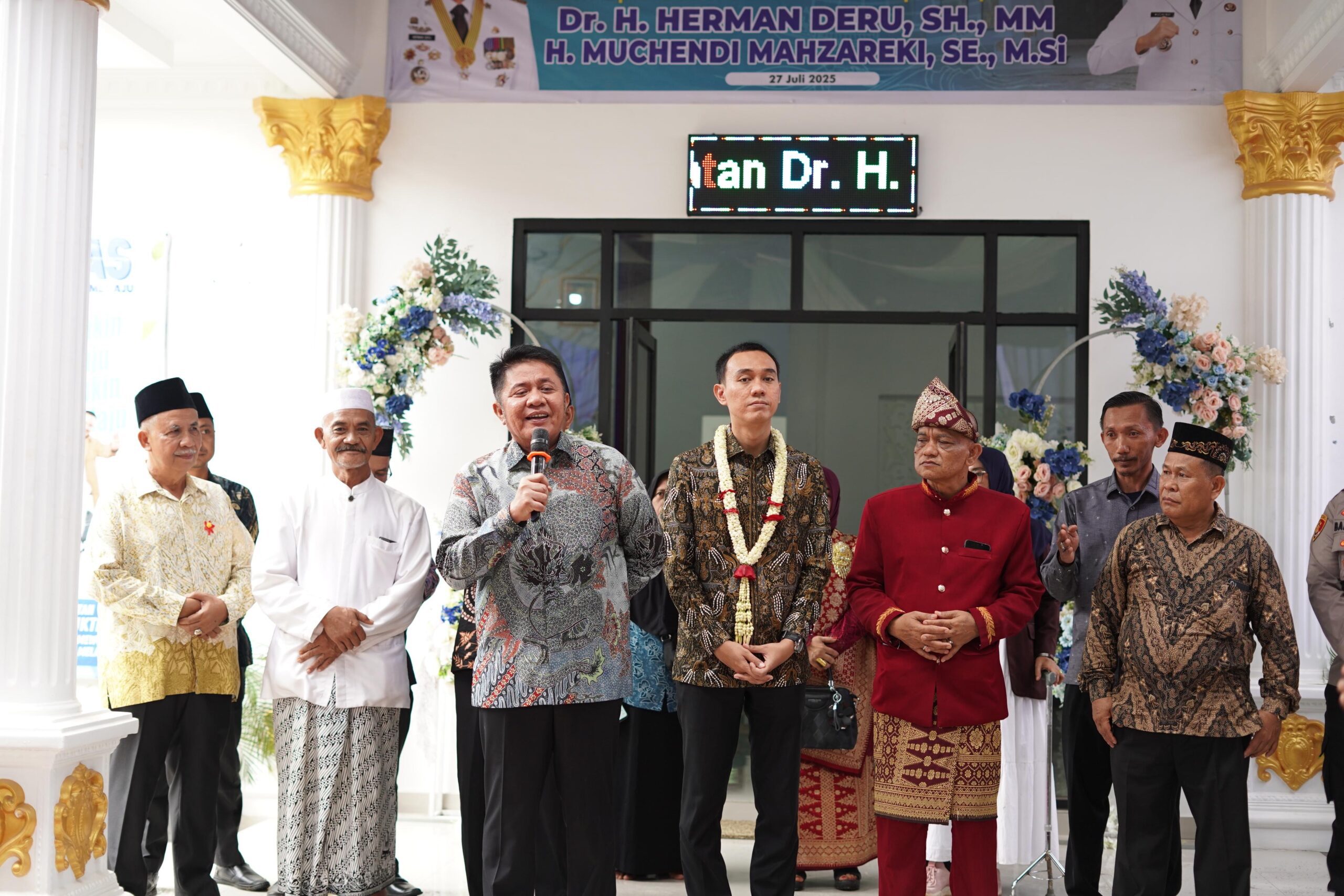 Kliksumatera.com OKI – Gubermur Sumsel H Herman Deru didampingi Bupati Kabupaten OKI Muchendi Mahzareki meresmikan Balai Desa Kerta Mukti Kecamatan Mesuji Raya Kabupaten OKI ditandai dengan penandatanganan prasasti, Minggu (27/7/2025).