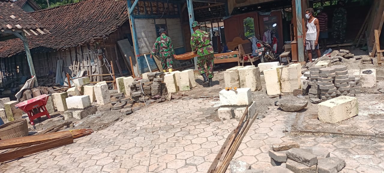 Komandan SSK TMMD ke-110 Kodim 0813/Bojonegoro Lettu Ckm Suroto dan Babinsa Desa Jatimulyo Serma Sudarman mendatangi pemilik rumah tersebut.