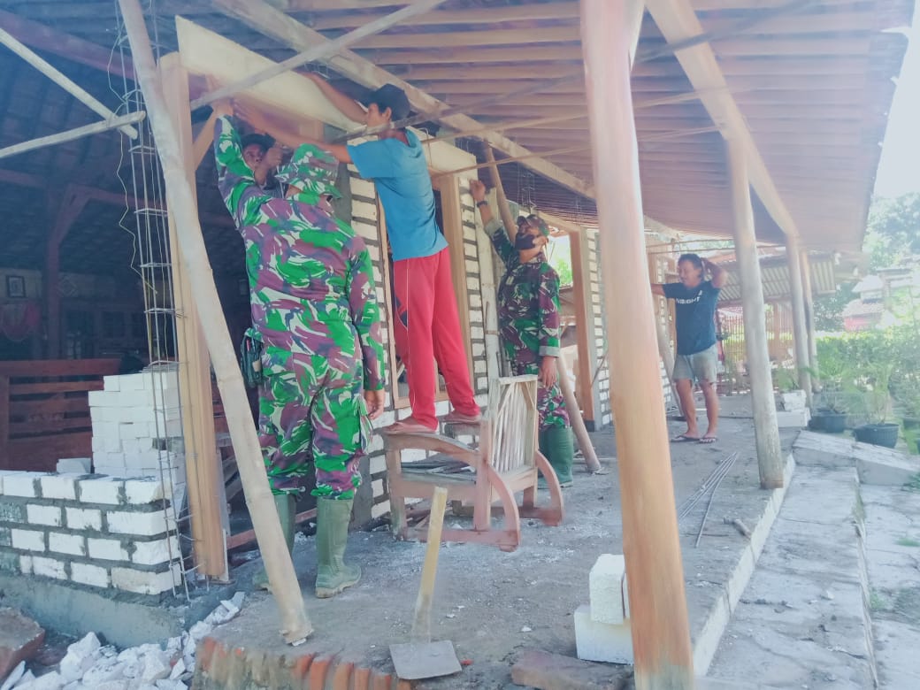 Pati – Tak terasa waktu sudah dua pekan berlalu setelah dibukanya secara resmi TMMD reguler ke 111 Kodim 0718/Pati yang dilaksanakan di Desa Tamansari, Kecamatan Jaken, Kabupaten Pati. Salah satu program yang menjadi sasaran fisik pada pembangunan rehab rumah RTLH banyak diantaranya yang sudah finishing. Untuk saat ini rumah milik Yarman (57) yang berada di Dukuh Kalimati dalam tahap pemasangan kusen jendela dan pintu serta pemasangan dinding tembok samping rumah. Senin (28/06/2021)