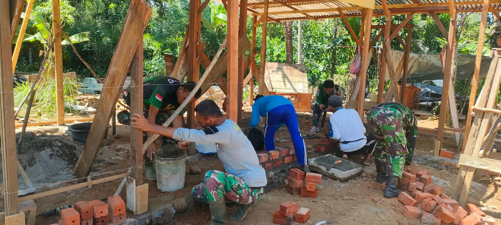 “Alhamdulillah kami anggota satgas TMMD yang diberikan tanggung jawab pengerjaan 1 unit RTLH memasuki tahapan terakhir. Mulai dari tahap pembongkaran sampai pengerjaan sesuai dengan yang direncanakan. Tahap pengerjaan hingga hari ini tercapai 100% , selanjutnya tinggal pembersihan sampah sisa material”, ungkapnya.