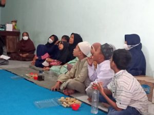 Acara pemberian santunan tersebut dikemas dengan begitu sederhana namun penuh keakraban dan penuh khitmad. Diawali dengan tausyiah sekaligus cerita Nabi Sam’un oleh Ustadz Soleh dengan pembaca acara Clara, para santri diajak untuk terus berbuat baik sebagaimana tuntunan agama serta membantu sesama.