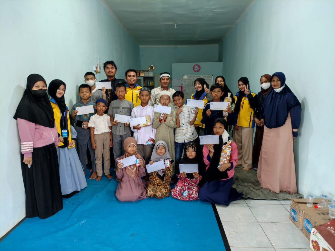 ”Alhamdulillah, acara hari ini berjalan lancar dan sukses. Dan semoga santunan yang kami berikan dari para donatur termasuk hadiah door prize berkah dan bermanfaat,” tandas Clara saat memberikan hadiah kepada Ridho Rifangga salah satu santri TPA Mesjid Al Ghazali Unsri.