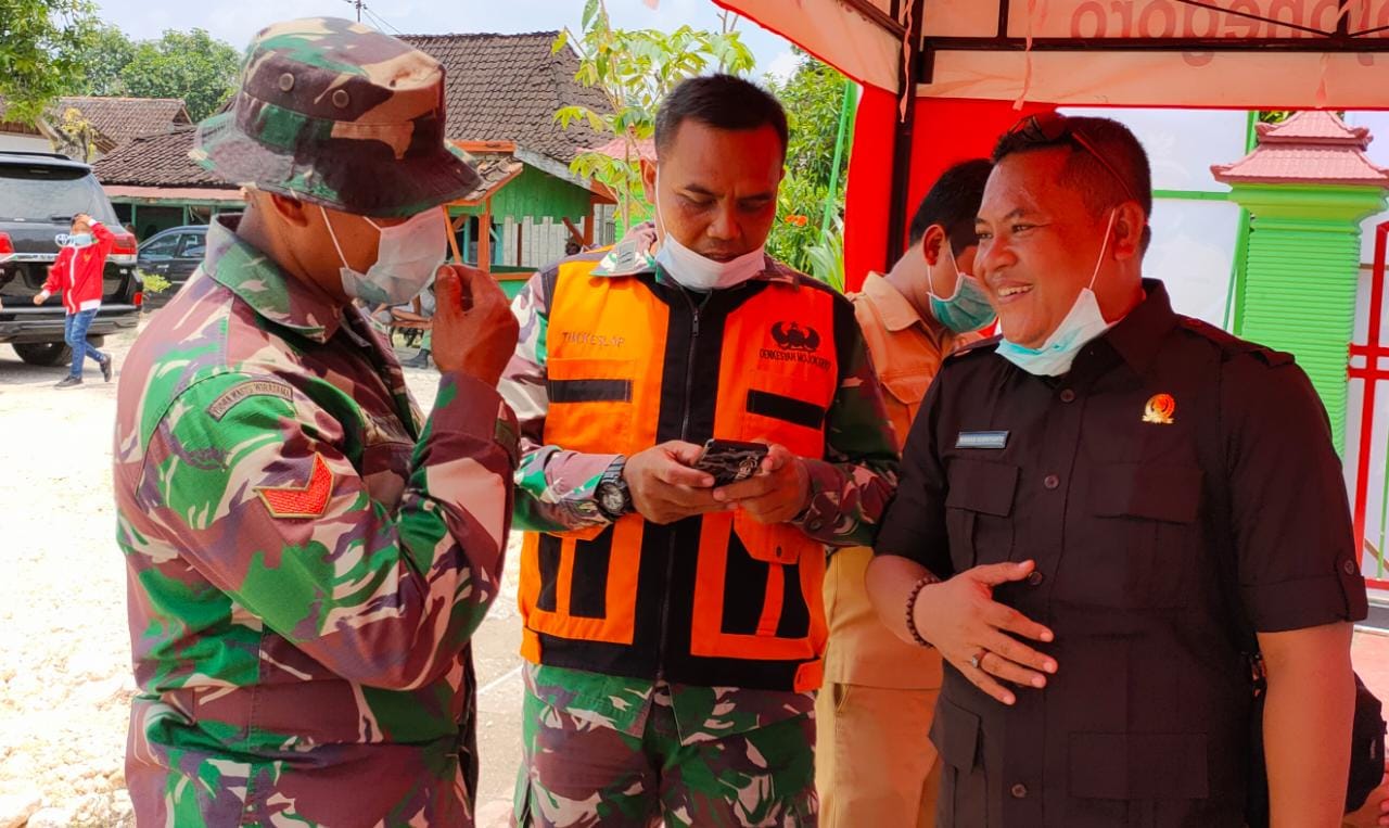 Wawan Kurniyanto menghampiri personel TMMD yang sedang berisitirahat siang setelah melakukan kegiatan pembangunan jalan aspal poros Desa Ngrancang, Rabu (10/03/2021).