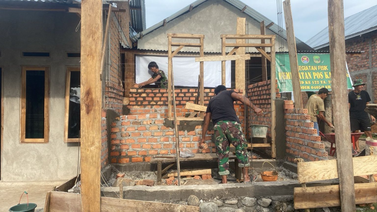 “Untuk batubata kini telah dibangun hingga setengahnya, lalu dilanjutkan kembali termasuk juga kusen jendela dan Pintu pun berada di posisinya,” ucap Koordinator Pembangunan Poskamling, Kapten Arm Ilham Arifin, Jumat 4 Oktober 2024.