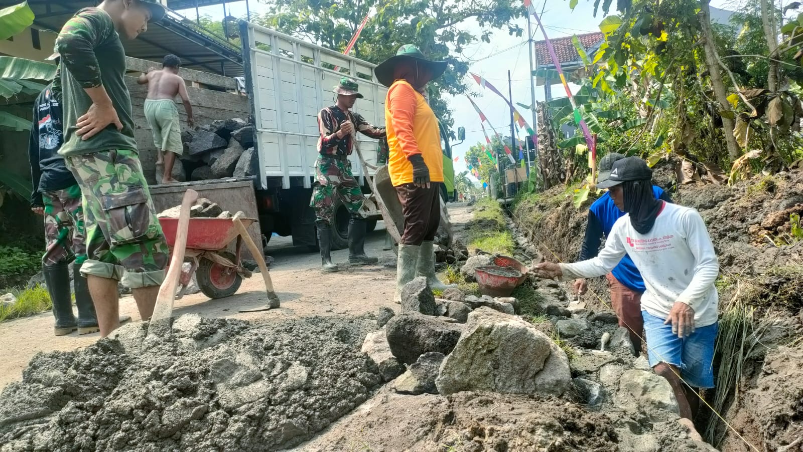 Surakarta – Setelah dibuka secara resmi pada tanggal 10 Mei Kemarin, pengerjaan sasaran fisik langsung dikebut oleh anggota Satgas TMMD Reguler ke-116 tahun 2023 Kodim 0735/Surakarta.