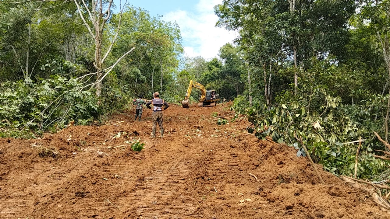 EMPAT LAWANG – Sasaran fisik pembukaan akses jalan TMMD ke 122 Kodim 0405/Lahat terus dikebut, yang mana kini telah tembus 24 persen dari target 4,7 KM dengan lebar 8 meter, di Desa Lampar Baru, Kecamatan Talang Padang, Kabupaten Empat Lawang.