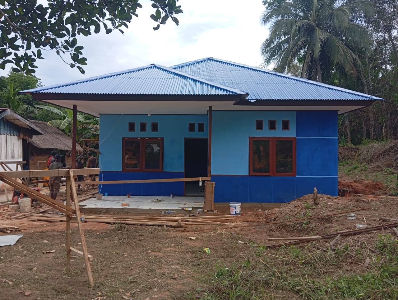 Material pintu dan cendela sudah terpasang secara rapih, memperkuat struktur rumah dan meningkatkan estetika bangunan. Pembangunan rumah ini merupakan bagian dari upaya meningkatkan kesejahteraan masyarakat di wilayah tersebut.