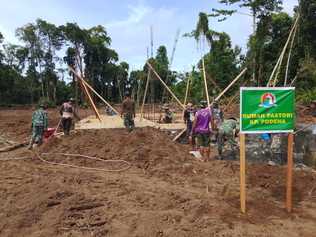 Satgas telah memulai sasaran fisik pondasi dan pengecoran sloof pada pembangunan Rumah Pastori